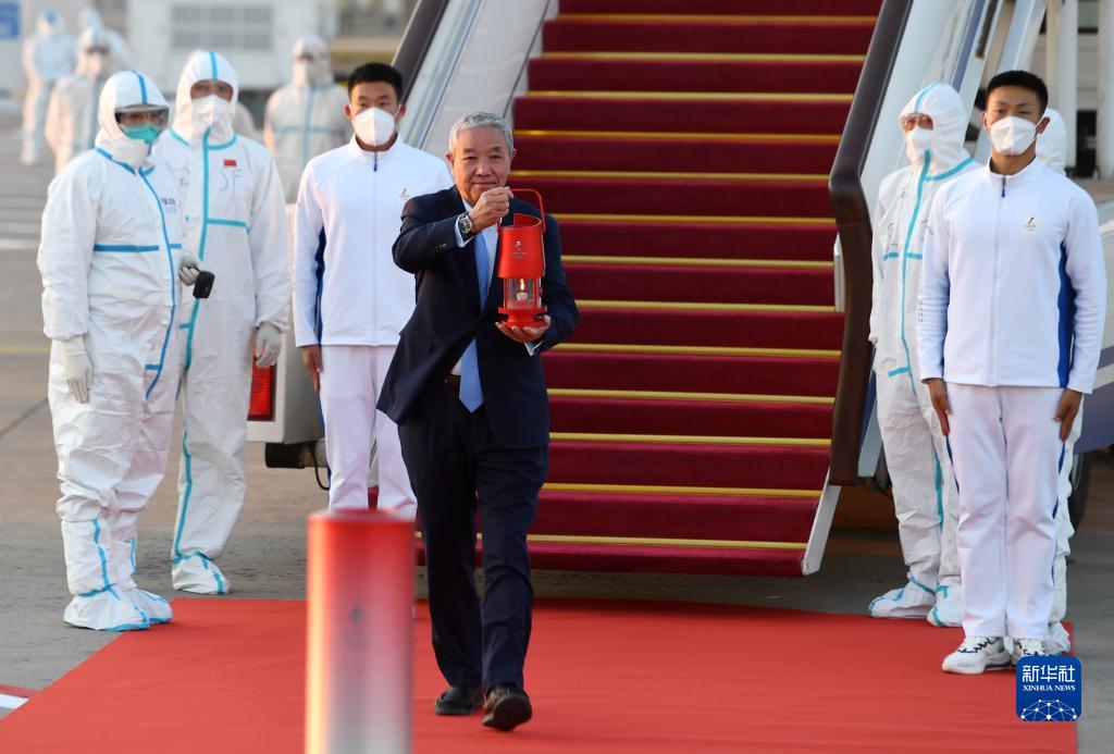 20日清晨6时许,随着北京冬奥组委赴希腊代表团抵达首都机场,北京冬奥会火种顺利抵达北京。北京冬奥组委特别代表——北京冬奥组委副主席于再清手持火种灯走出舱门。