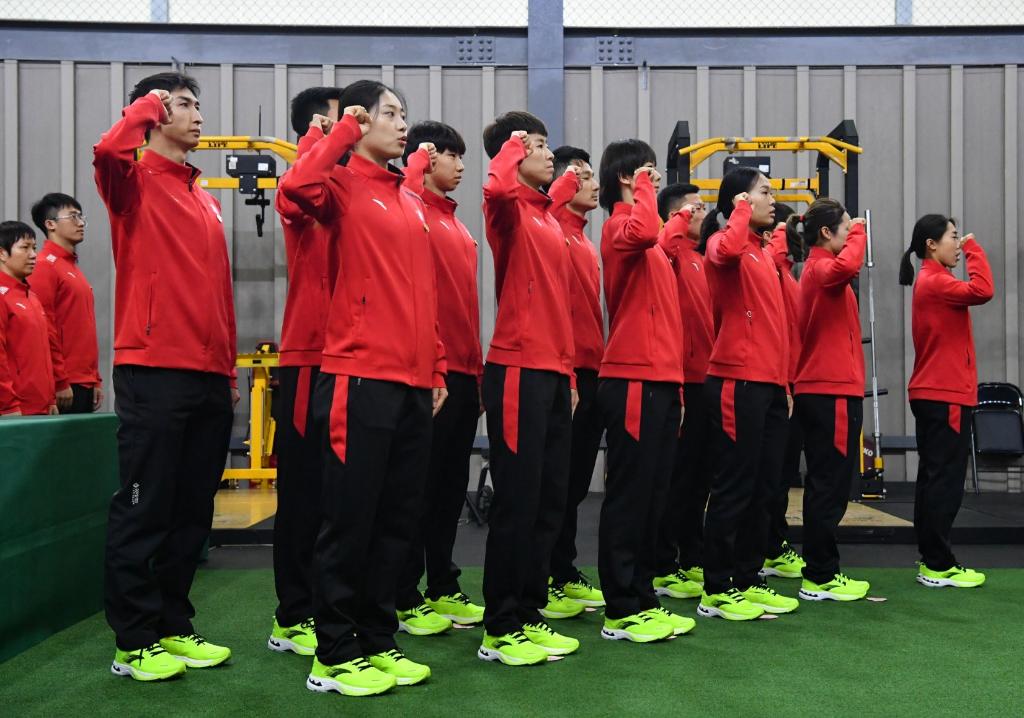 短道速滑国家队队员在出征仪式上宣誓(10月16日摄)。新华社记者 宋彦桦 摄