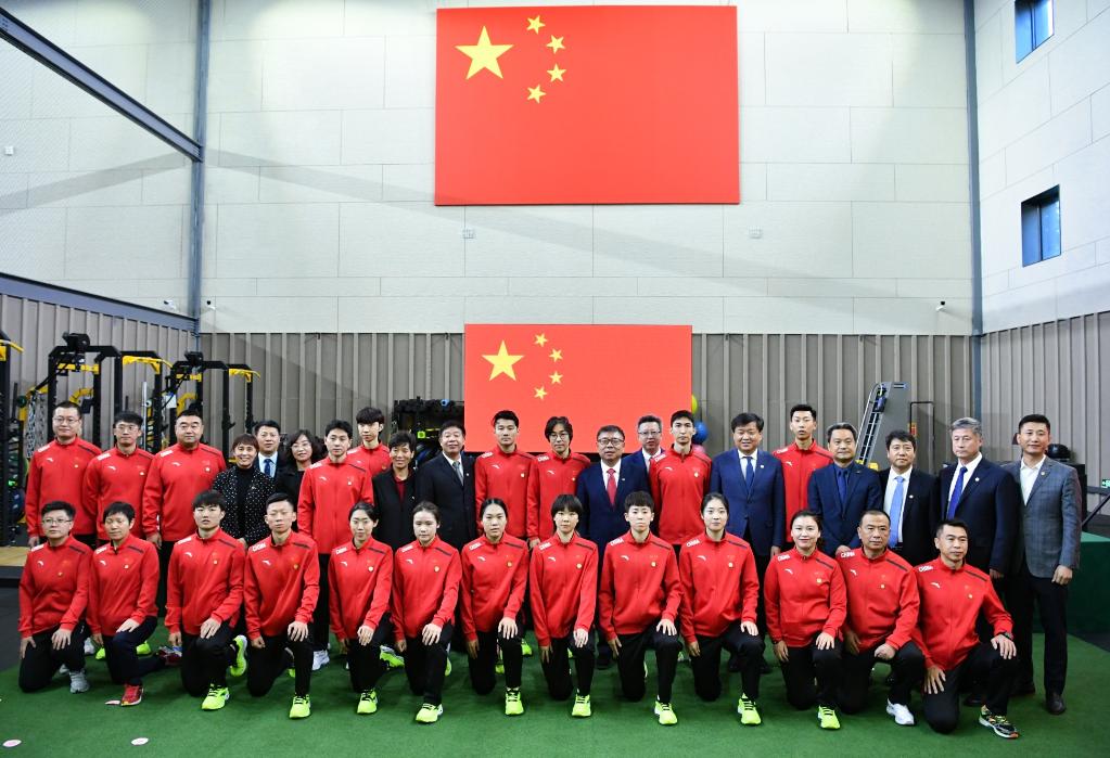 短道速滑国家队2021-2022赛季出征仪式合影(10月16日摄)。新华社记者 宋彦桦 摄