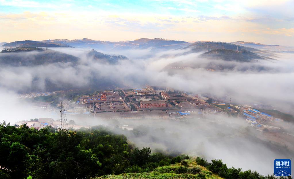 这是晨雾中的陕西省吴起县铁边城镇(2020年9日11日摄)。新华社发(白成旭 摄)
