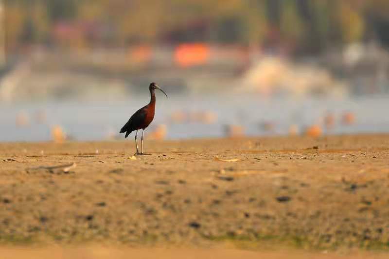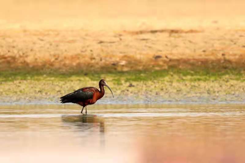 彩鹮现身张掖黑河湿地国家级自然保护区(保护区管理局供图 单国锋 摄)
