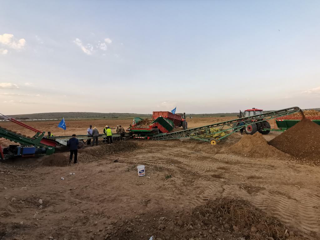 大型机械正在收获马铃薯。(新华社记者许雄 摄)