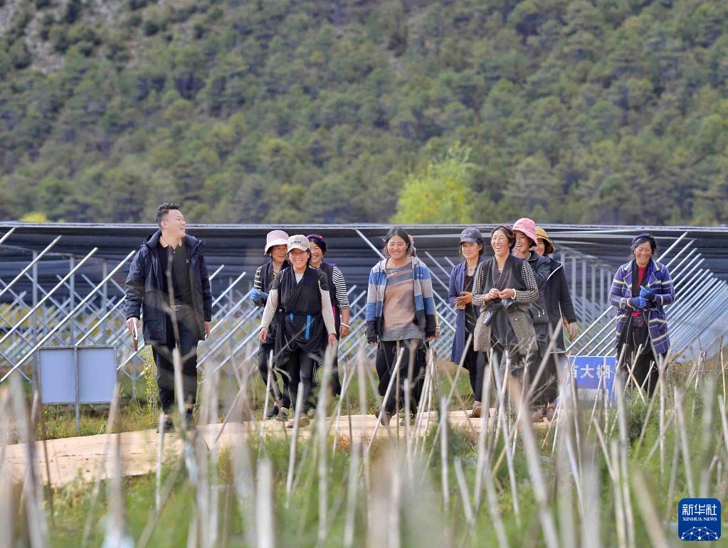10月22日,郎达村村民来到得荣县药材种植示范基地准备劳作。