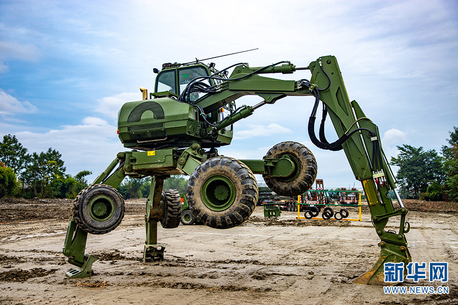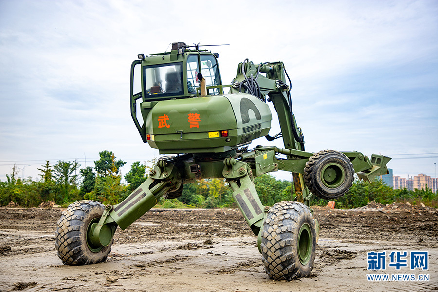 新装备演示:GJW112型山地挖机(摄于10月20日)。新华网发(武警第二机动总队某支队供图)