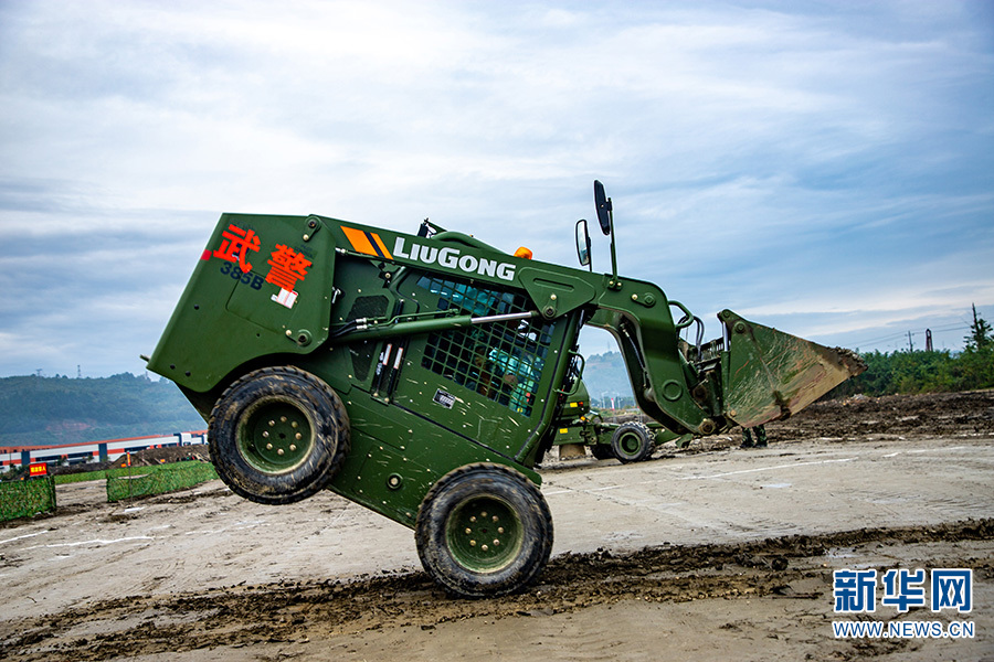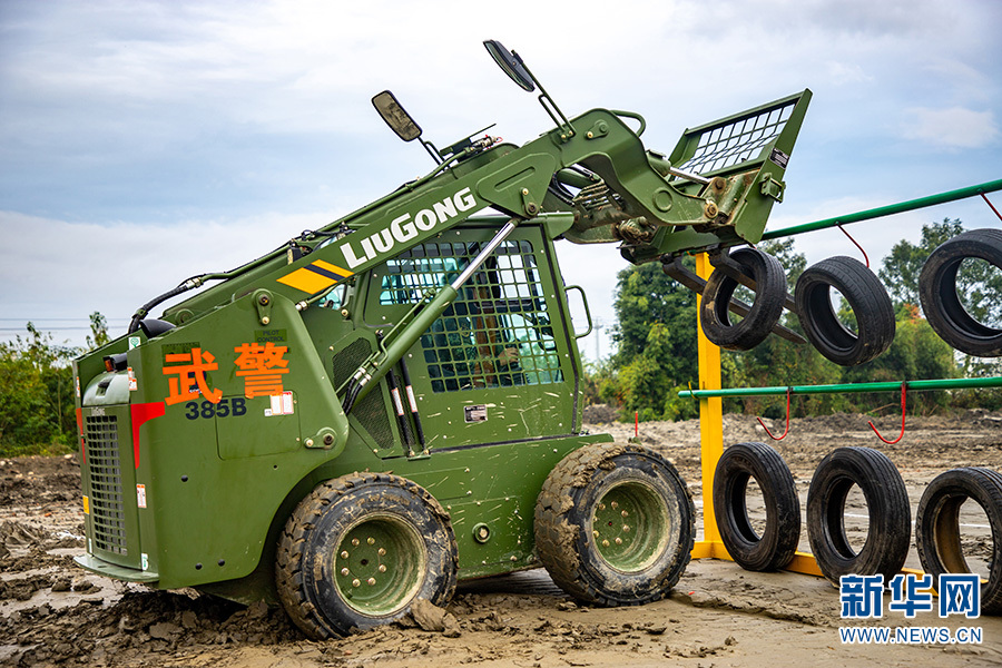 新装备演示:滑移式轮式装载机(摄于10月20日)。新华网发(武警第二机动总队某支队供图)