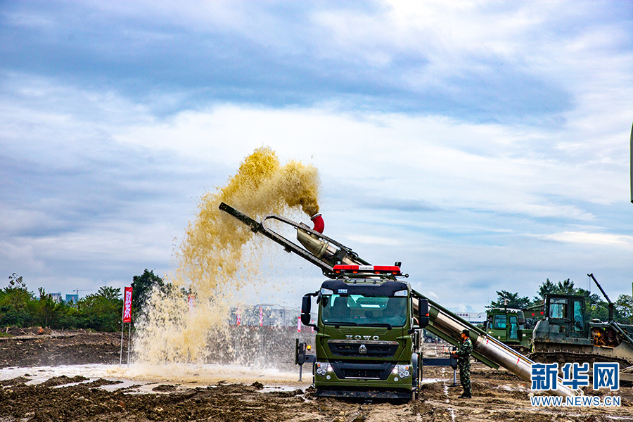 “龙吸水”垂直供排水抢险车(摄于10月20日)。新华网发(武警第二机动总队某支队供图)