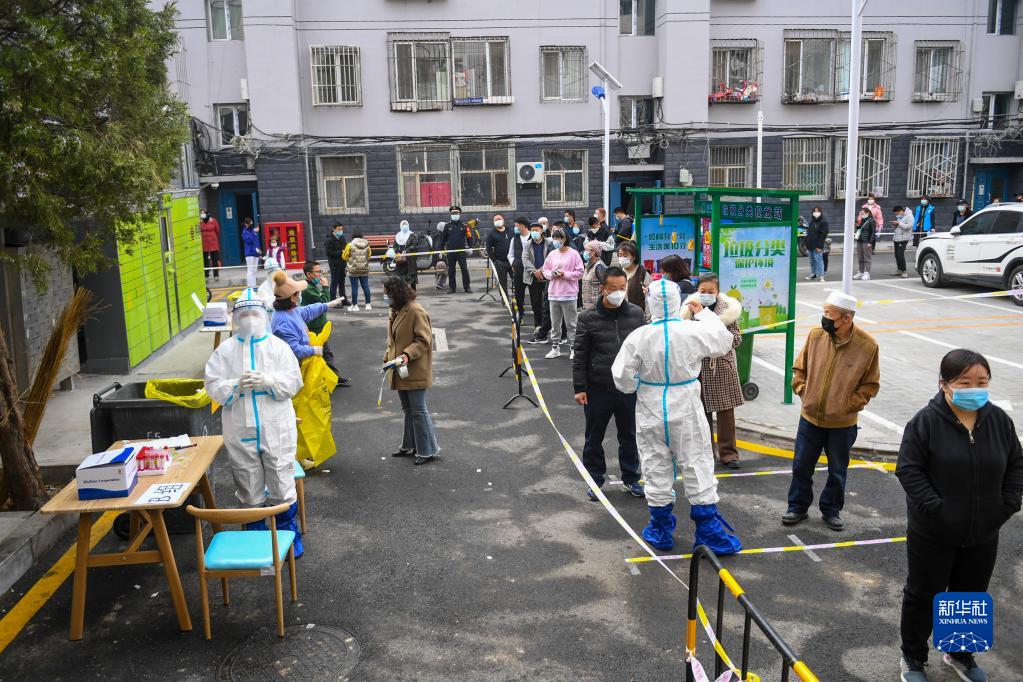 10月24日,在呼和浩特市回民区宽巷子社区设立的临时核酸检测点,居民排队进行核酸检测。
