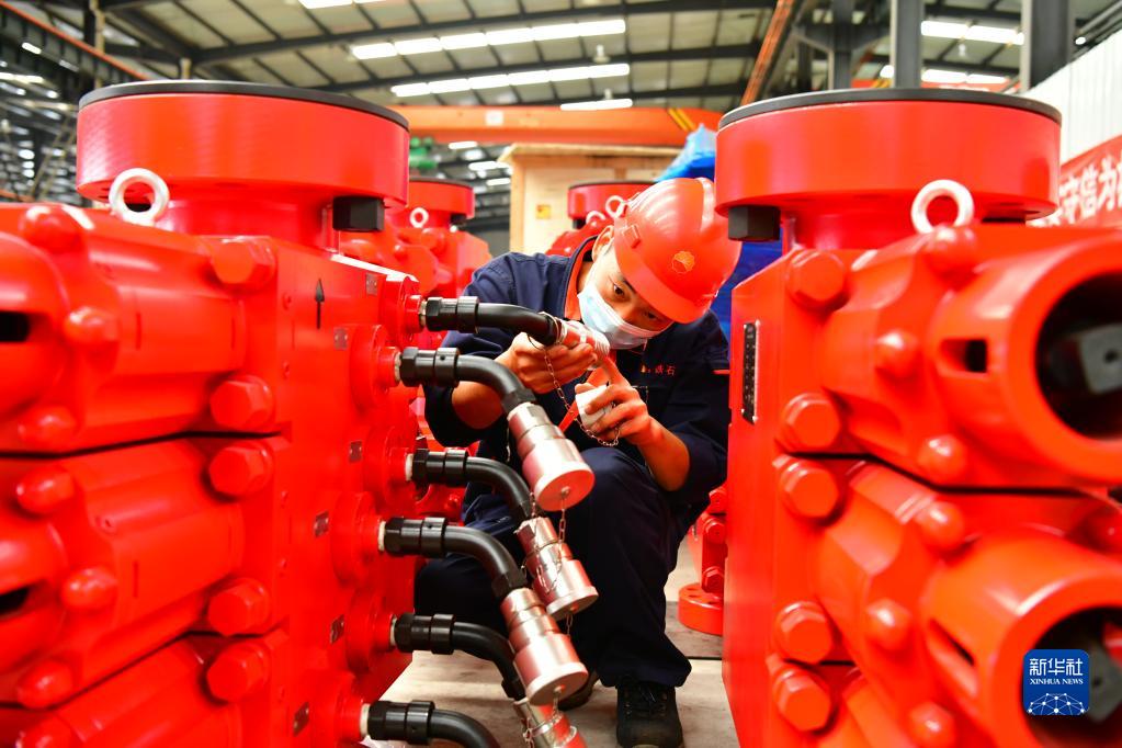 10月15日,在位于河北省任丘市的河北新铁虎石油机械有限公司,工人在检查产品质量。新华社记者 牟宇 摄