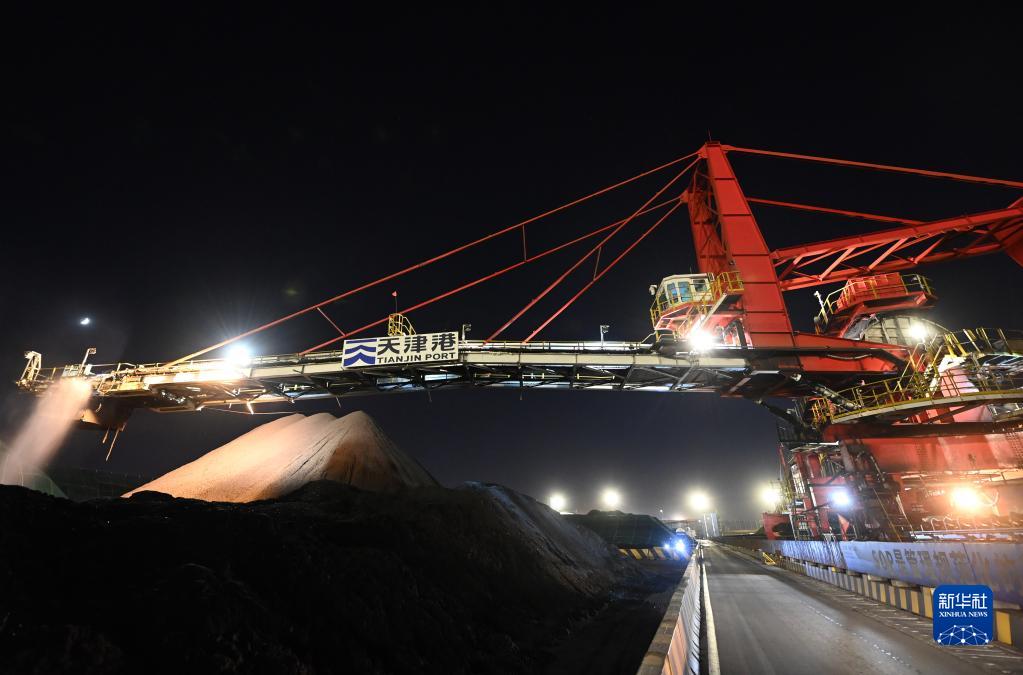 这是10月11日拍摄的天津港煤码头夜间作业一景。新华社记者 李然 摄