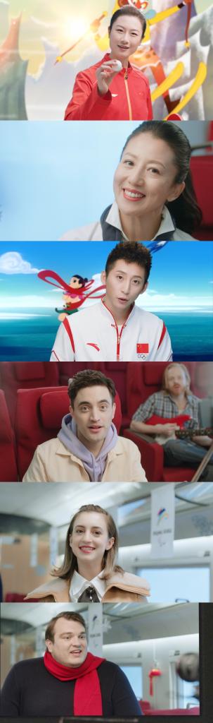 中国冬奥首金得主杨扬和夏奥冠军丁宁、林跃领衔英文MV,与中外网红、冰雪运动小将、新华社记者共同演唱。