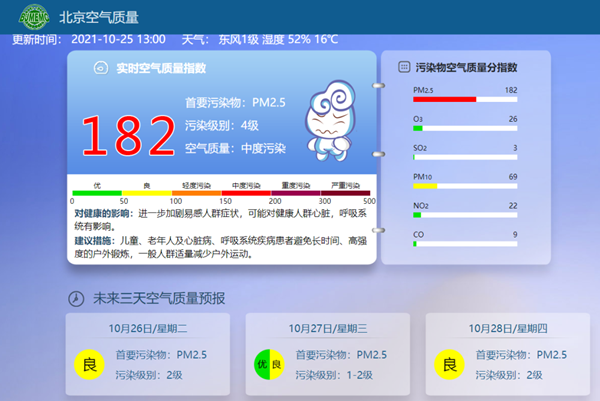 据@北京环境监测 的实时空气质量指数显示,目前北京的首要污染物为PM2.5,污染级别是4级,空气质量达到中度污染。