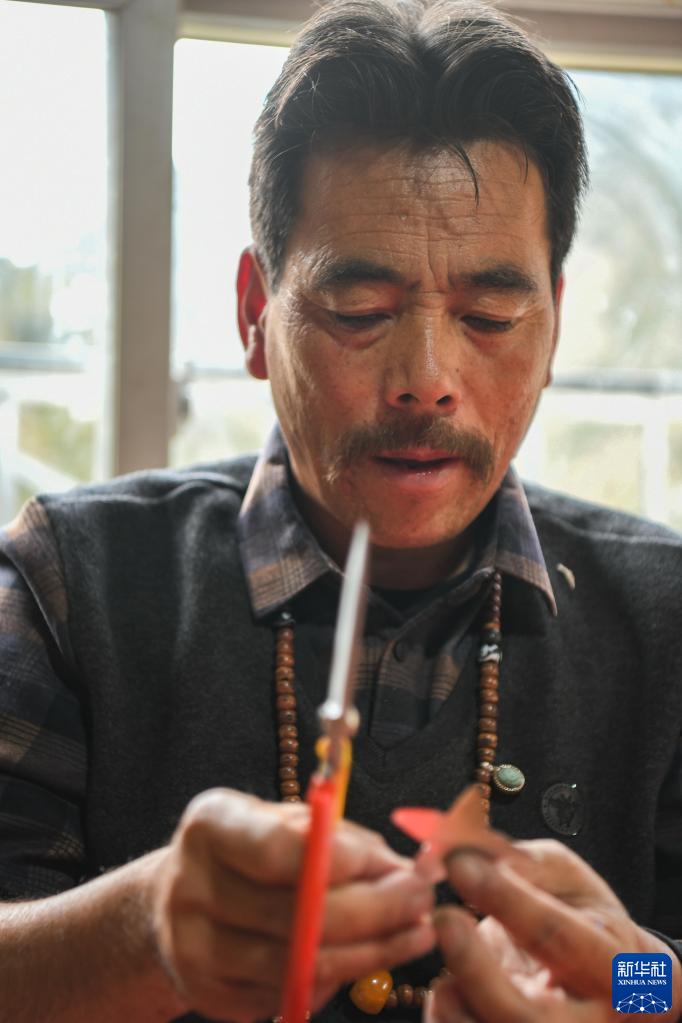 图为桑安在制作五角星。新华社记者王曦 摄