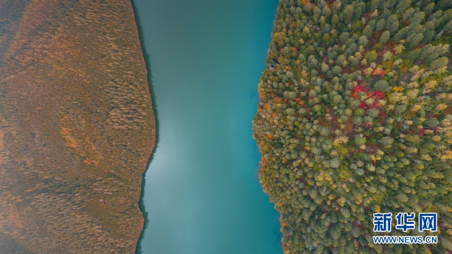 深秋时节,云南香格里拉普达措国家公园体制试点区层林尽染,色彩斑斓,高山草甸、原始森林、湖泊湿地构成了一幅美丽画卷(10月20日摄)。新华网发(香格里拉普达措国家公园体制试点区供图)