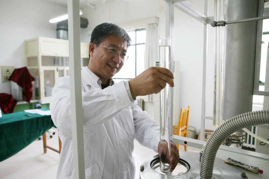 ↑正在实验室做油品实验的柯友胜(资料图片)。