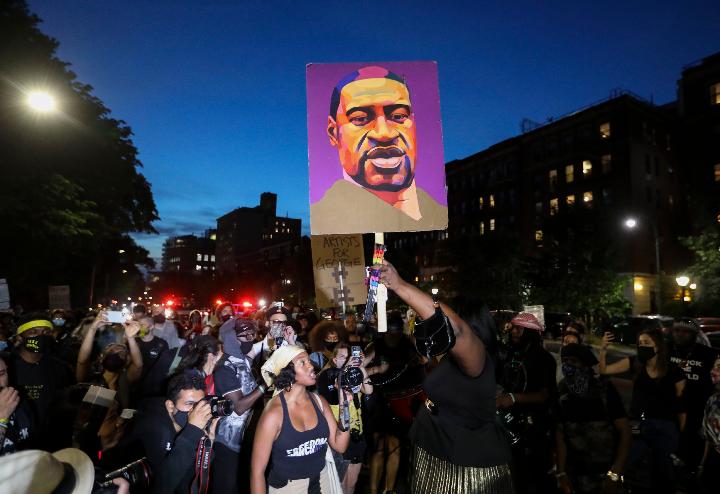 5月25日,人们在美国纽约参加悼念弗洛伊德的游行。(新华社记者王迎摄)