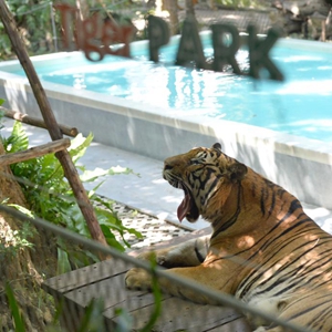 这是10月27日在泰国芭堤雅老虎园拍摄的老虎。新华社发(拉亨摄)