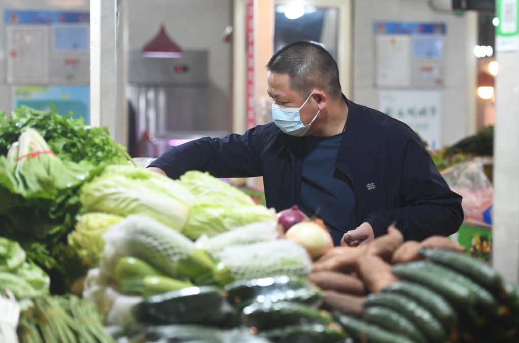 市民在河北石家庄市裕华区塔北路市场选购蔬菜。 新华社记者 朱旭东 摄
