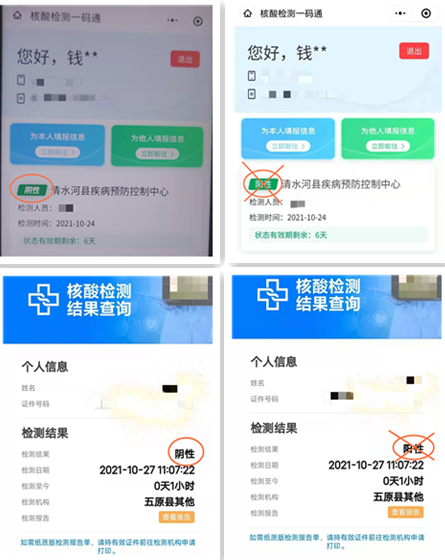 案例:10月25日,内蒙古呼和浩特市清水河县的某微信聊天群,出现一张结果呈阳性的核酸检测报告单。后经调查,是15岁的钱某某为与同学开玩笑,用修图软件把结果改成了阳性。27日,巴彦淖尔市五原县也发生了一起类似事件,当事人是未满14周岁的姜某某。