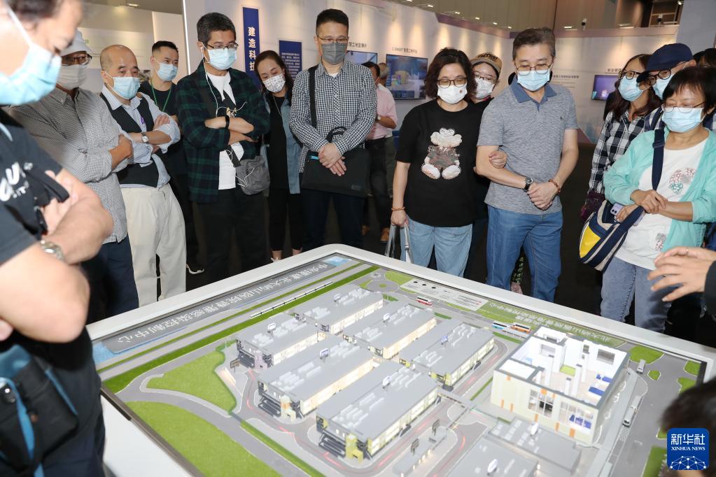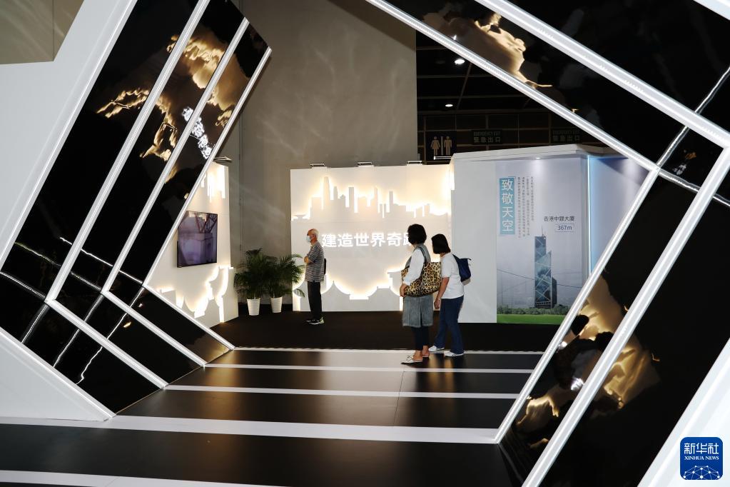 展览特设了“璀璨香江,建造精彩”板块,展示香港市民熟悉的本地建筑图片。中央援建的北大屿山医院香港感染控制中心建筑模型吸引了很多参观者。中国建筑工程(香港)有限公司总经理孔祥兆提到,在四个月内快速建成的北大屿山医院香港感染控制中心,体现了中央对香港的大力支援。