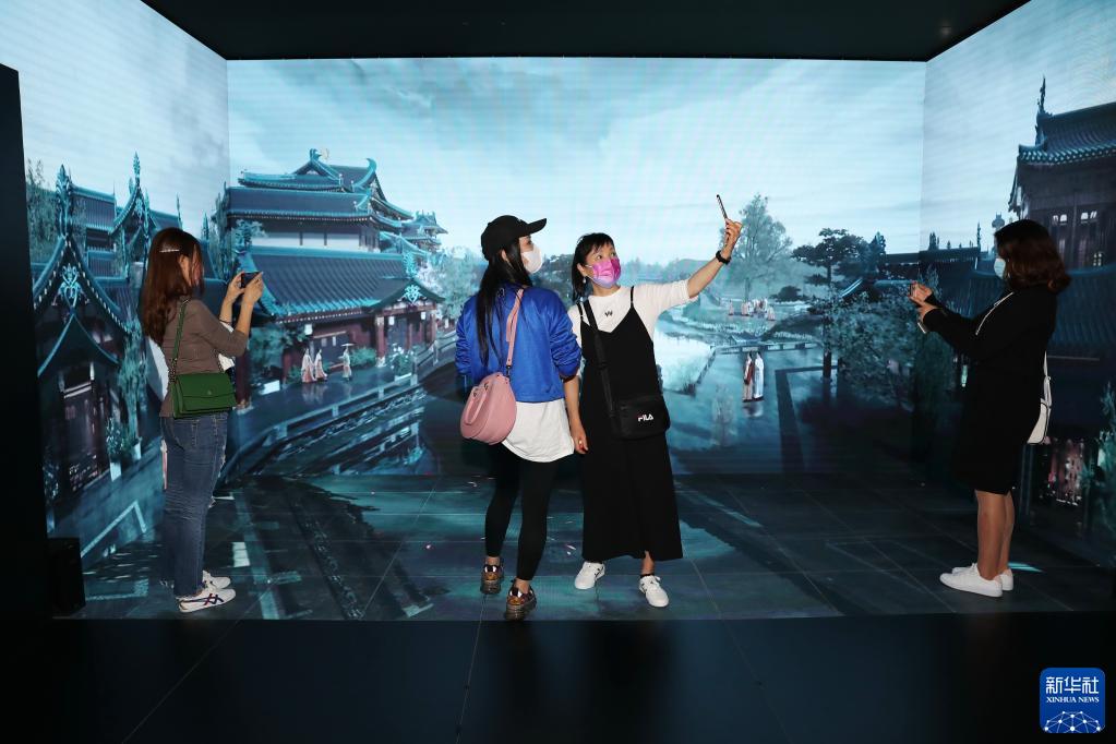 在香港会展中心,市民在大国建造主题展上拍照(10月26日摄)。新华社记者 吴晓初 摄