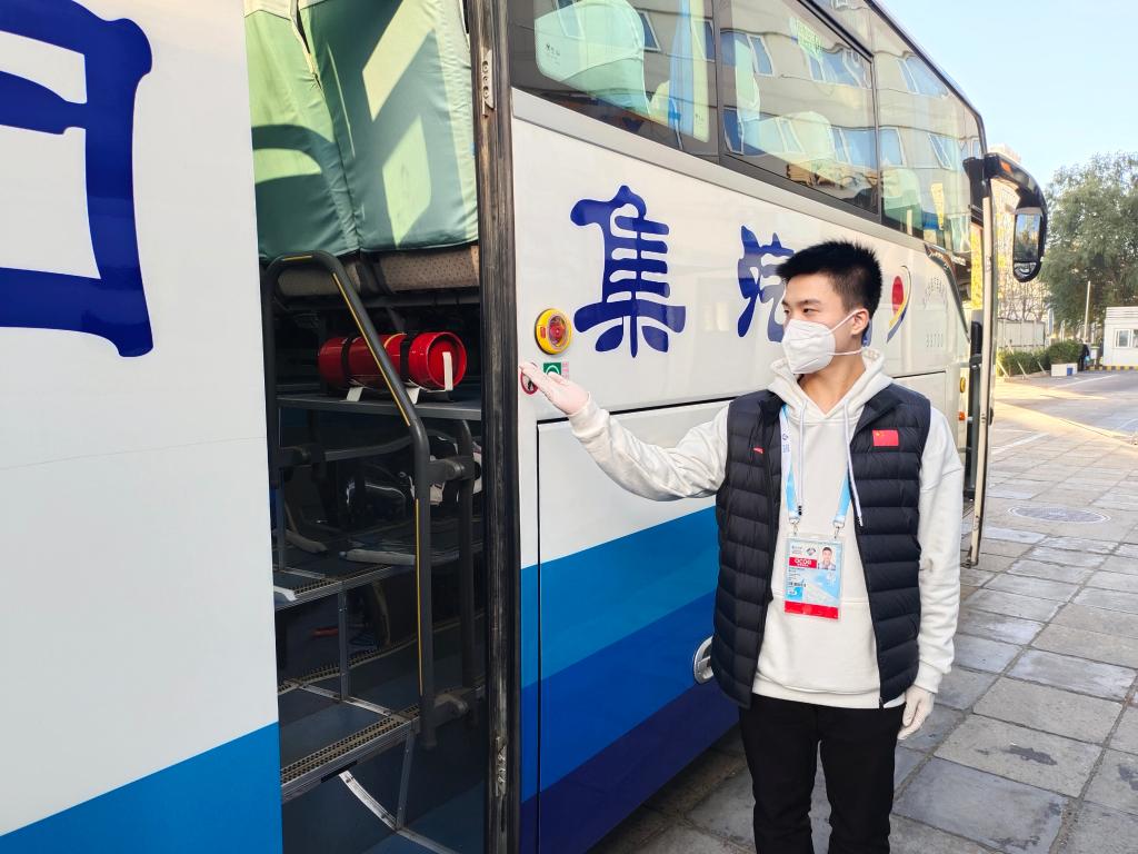 陈子芃是交通领域的志愿者组长,工作地点位于闭环内的酒店,负责对前往场馆的工作人员进行上下车引导,以及对车辆的往返信息进行记录。他们不能像其他志愿者一样在场馆工作,而是一直坚守在酒店的候车区。