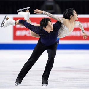 10月30日,隋文静(上)/韩聪在双人滑自由滑比赛中。新华社/美联