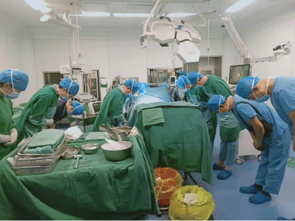 ↑宁夏回族自治区人民医院医护人员在手术前进行缅怀仪式。
