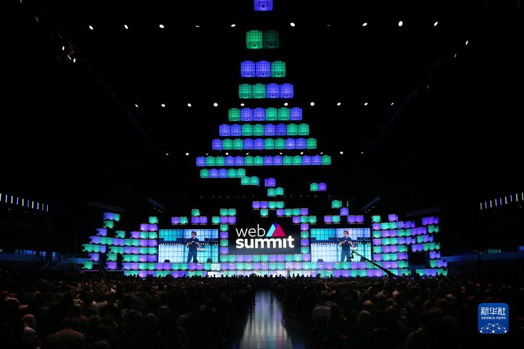 这是11月1日在葡萄牙里斯本拍摄的2021年网络峰会开幕现场。
