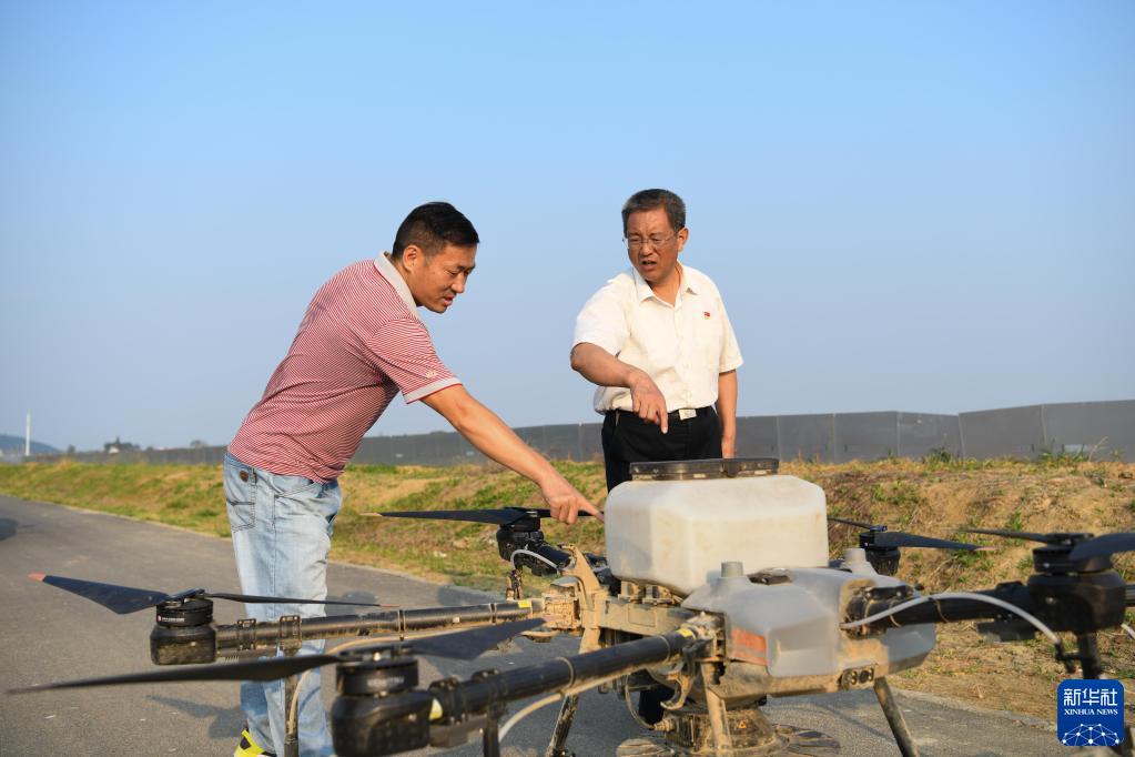9月14日,王维(右)在安徽省安庆市岳西县大歇村调研。新华社发