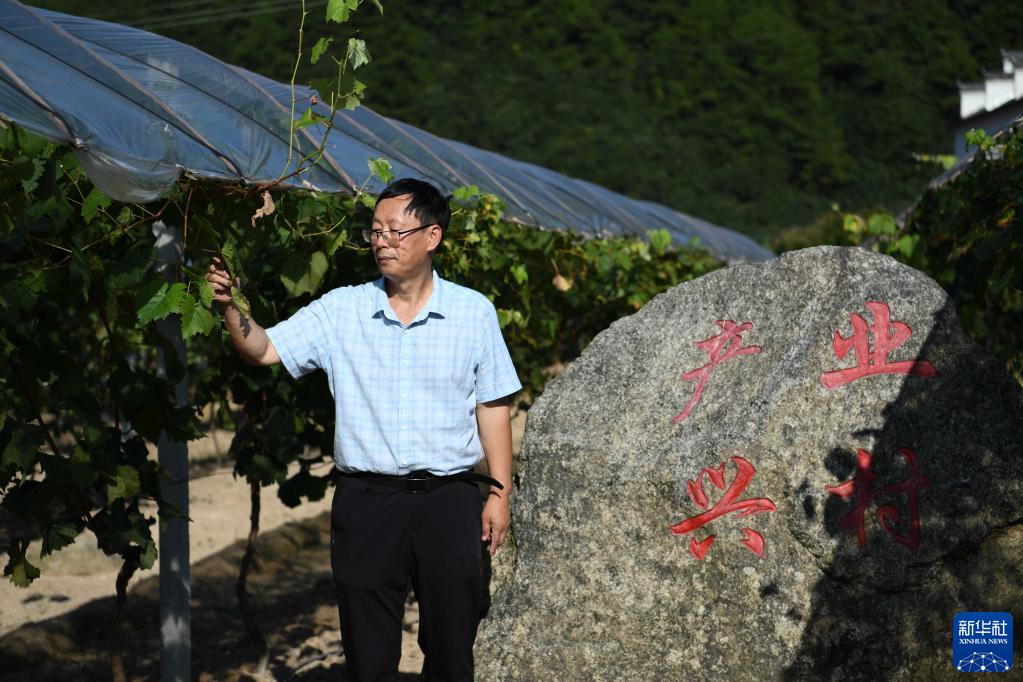 9月14日,李兴国在安徽省安庆市岳西县五河镇河南村走访一处农业产业园。新华社记者 张端 摄