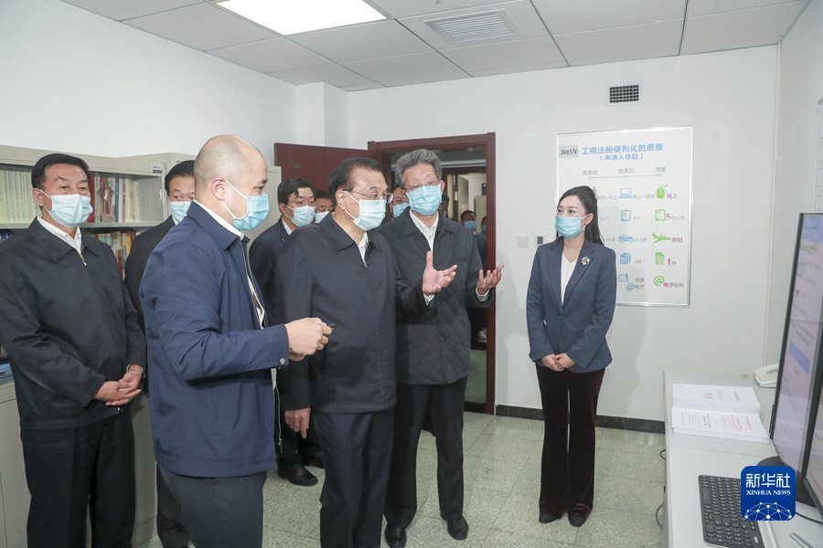 11月1日,中共中央政治局常委、国务院总理李克强到市场监管总局考察,并主持召开发展壮大市场主体工作座谈会。这是李克强考察登记注册局。新华社记者 丁林 摄