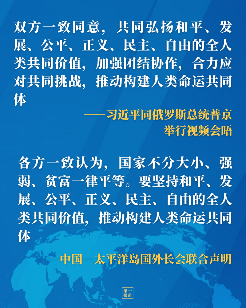 从同普京总统视频会晤、同菲律宾总统杜特尔特通电话,到第七十届联合国大会一般性辩论、世界经济论坛“达沃斯议程”对话会、中国共产党与世界政党领导人峰会等多边场合,习近平主席多次阐述全人类共同价值的深刻内涵,凝聚中外共识。