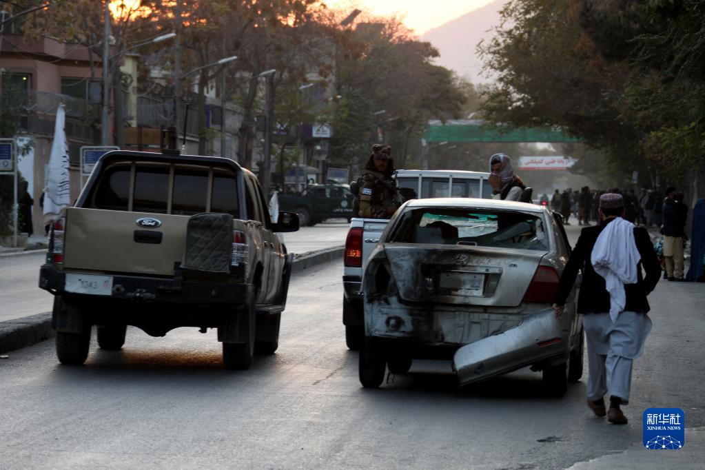 这是11月2日在阿富汗首都喀布尔发生爆炸的地点附近拍摄的一辆受损汽车。新华社发(塞夫拉赫曼·萨菲摄)