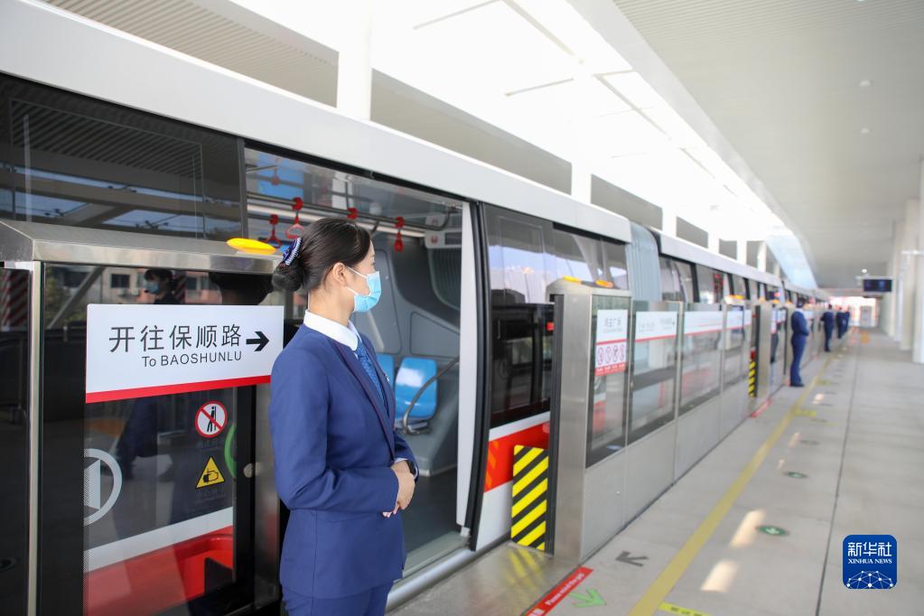 11月3日,芜湖市无人驾驶跨座式单轨列车整装待发。