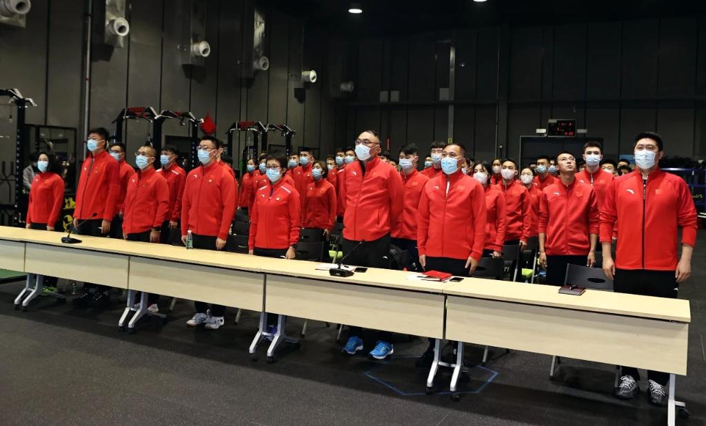 速度滑冰国家集训队2021-2022赛季外赛行前教育会现场。图源“中国冰雪”官方微信公众号