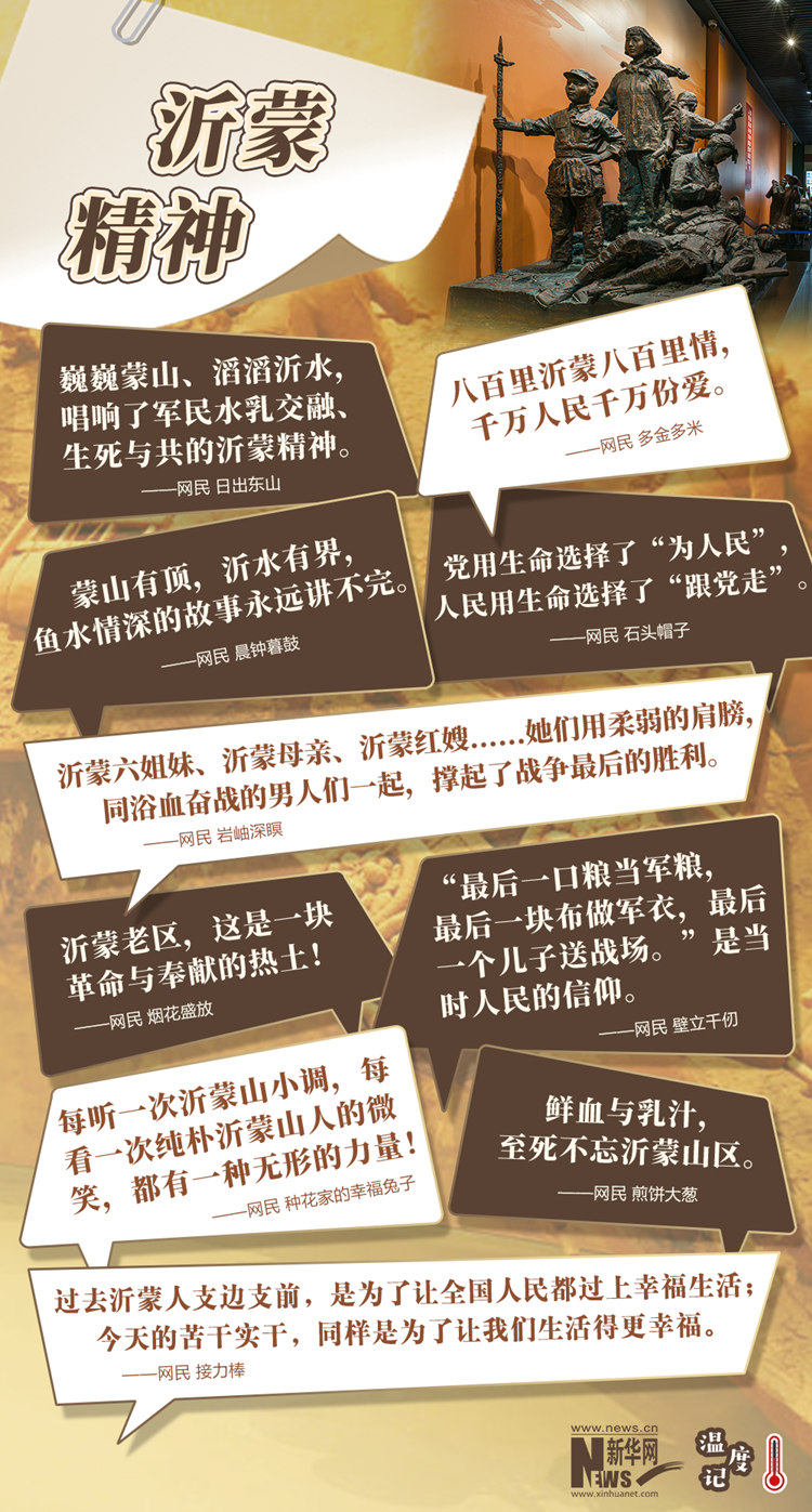 党为了人民,人民信任党;党依靠人民,人民跟党走。正如网友所说,“蒙山有顶,沂水有界,鱼水情深的故事永远讲不完”。今天,诞生于革命战争岁月的沂蒙精神早已成为一面旗帜,鼓舞着老区的人们,干群一心,战天斗地,苦干实干,顽强不懈,老区面貌日新月异。接续传承沂蒙精神,紧紧拉住人民的手,一切为了人民,一切依靠人民,幸福美好的歌声将更加悠长。(文字:徐可 海报设计:王晔)