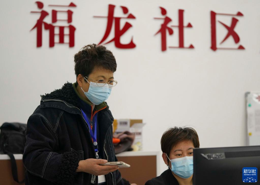 11月2日,50岁的黑河市福龙社区党委书记何娟(左)在社区进行密接人员行动轨迹调查统计。