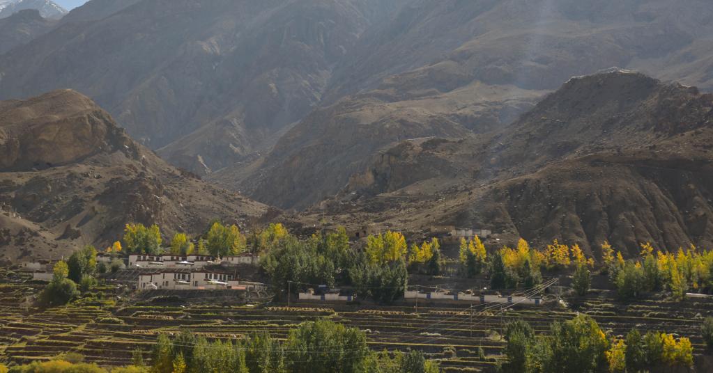 卡热组目前共有19户77人。走在村道上,可以看到一幢幢藏式小楼,村民家门前的树叶泛黄,脚下是青稞留香的田野,深秋的边陲古村宛如嵌在深山里的一幅油画。