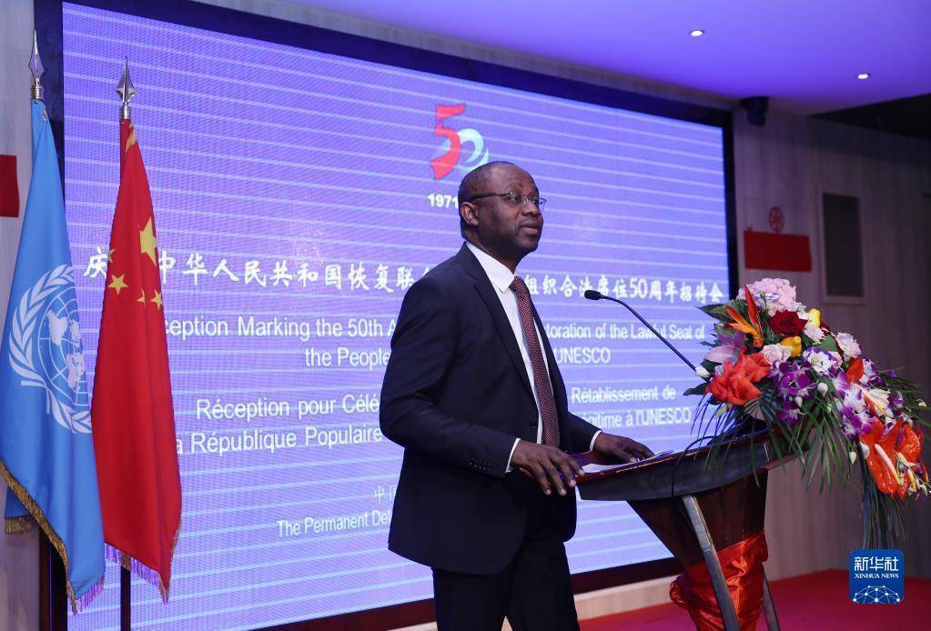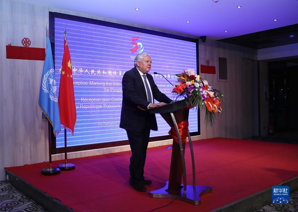 中国常驻联合国教科文组织大使衔代表杨进在致辞中表示,50年前,中华人民共和国恢复在联合国教科文组织合法席位,是该组织历史上的里程碑事件,增强了该组织的代表性和权威性,并开启了中国与教科文组织合作的新篇章。中国始终以实际行动支持教科文组织事业,推动实现联合国千年发展目标和2030年可持续发展议程目标。