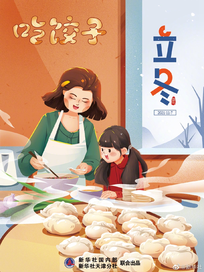 “黄花犹带露,红叶已随风。”11月7日12时59分将迎来“立冬”节气。此时节,黄花带露,细雨生寒,残枝枯树,红叶满阶,秋意虽未尽消,寒风凛然而至。由于“立冬”属秋冬之交,吃饺子成为习俗之一,“立冬不端饺子碗,冻掉耳朵没人管”。马上就要“立冬”了,再忙碌的你,也要记得吃上一口热乎乎的饺子。(记者周润健,海报制作:方金洋)