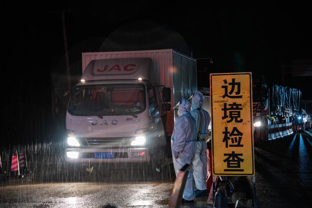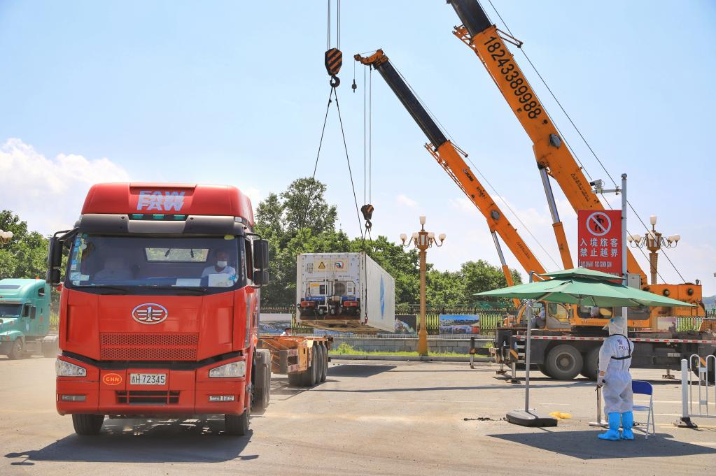 图为吉林出入境边防检查总站对入境货车从严查验。