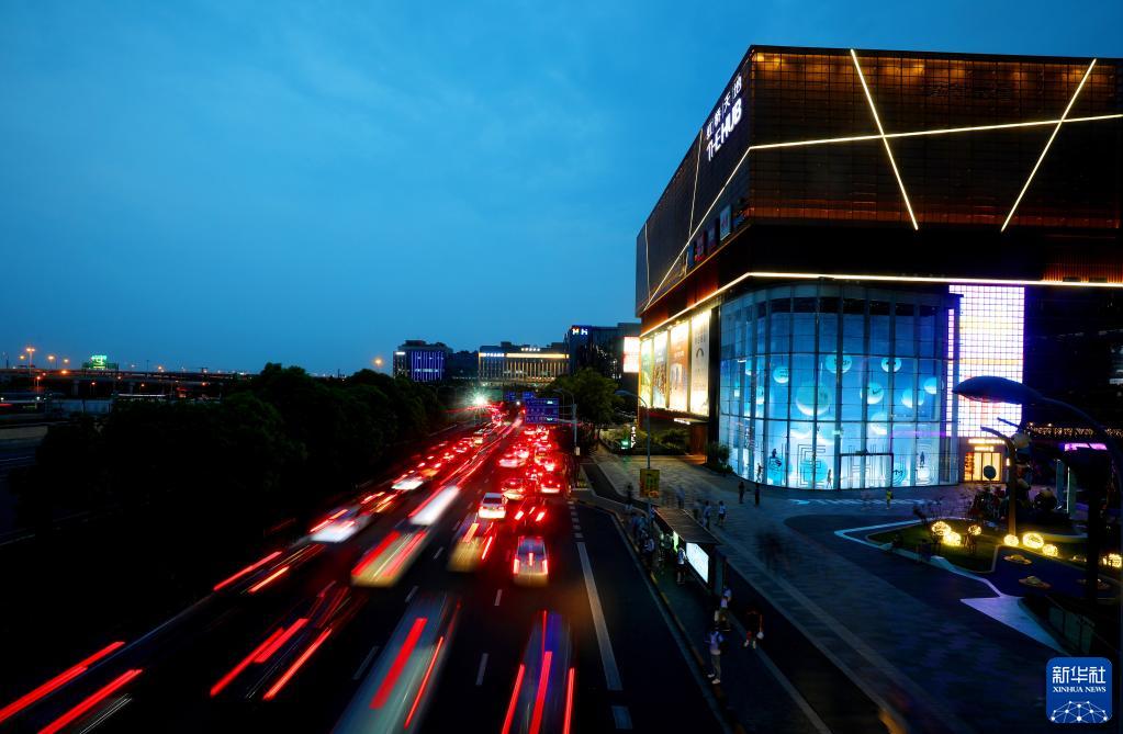 这是从连接虹桥商务区和虹桥交通枢纽的人行天桥上俯瞰虹桥商务区(2020年9月10日摄)。新华社记者 方喆 摄