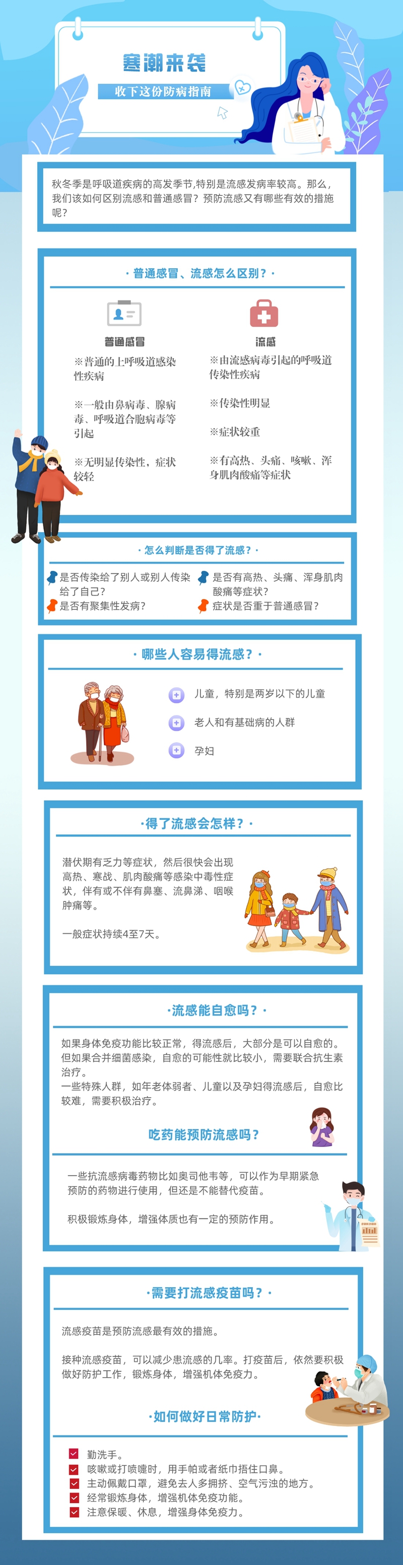 中南大学湘雅三医院儿科副主任陈志衡介绍,寒潮中儿童青少年是流感易发人群,在日常生活中应采取防护措施,有效减少流感的感染和传播,勤洗手,尽量避免用手触摸眼睛和口鼻。学生一旦出现流感症状,应居家隔离观察,不带病上课,减少疾病传播。接种流感疫苗是预防流感最有效的手段。流感病毒容易产生变异,人体感染后不易产生持久性的免疫保护。因此,今年上半年打了流感疫苗的学生,下半年还需要接种流感疫苗,以获得持久性的免疫保护。