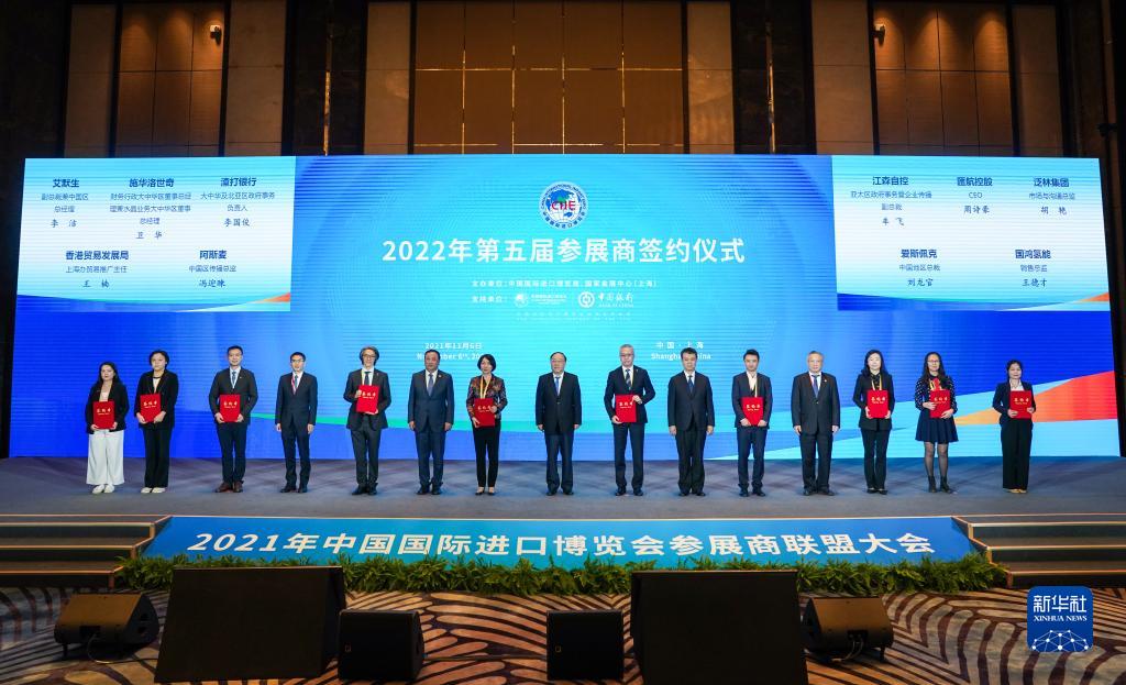 在6日举行的参展商签约仪式上,50家企业和机构集体签约第五届进博会,许下“未来之约”。