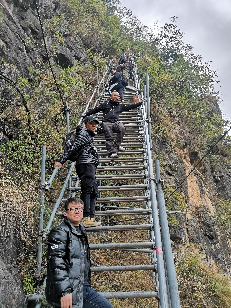 2020年12月6日,饶力文(左一)在四川凉山“悬崖村”拍摄微纪录片《战贫之路》