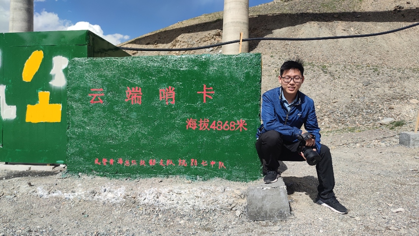 2021年7月17日,新华社记者田定宇在位于昆仑山口的青海省总队某支队执勤七中队“云端哨卡”采访