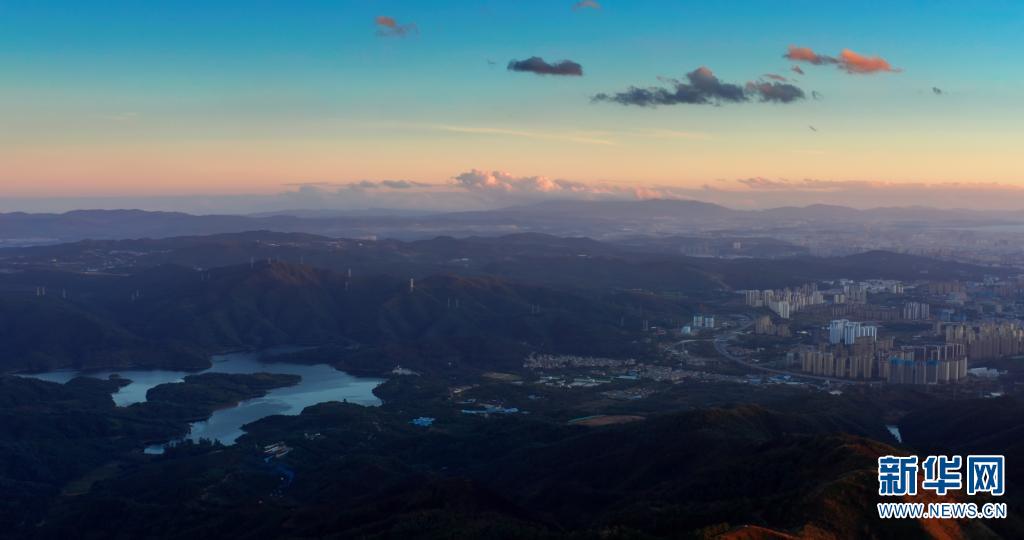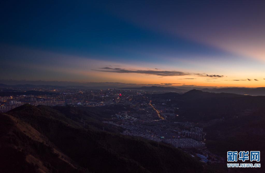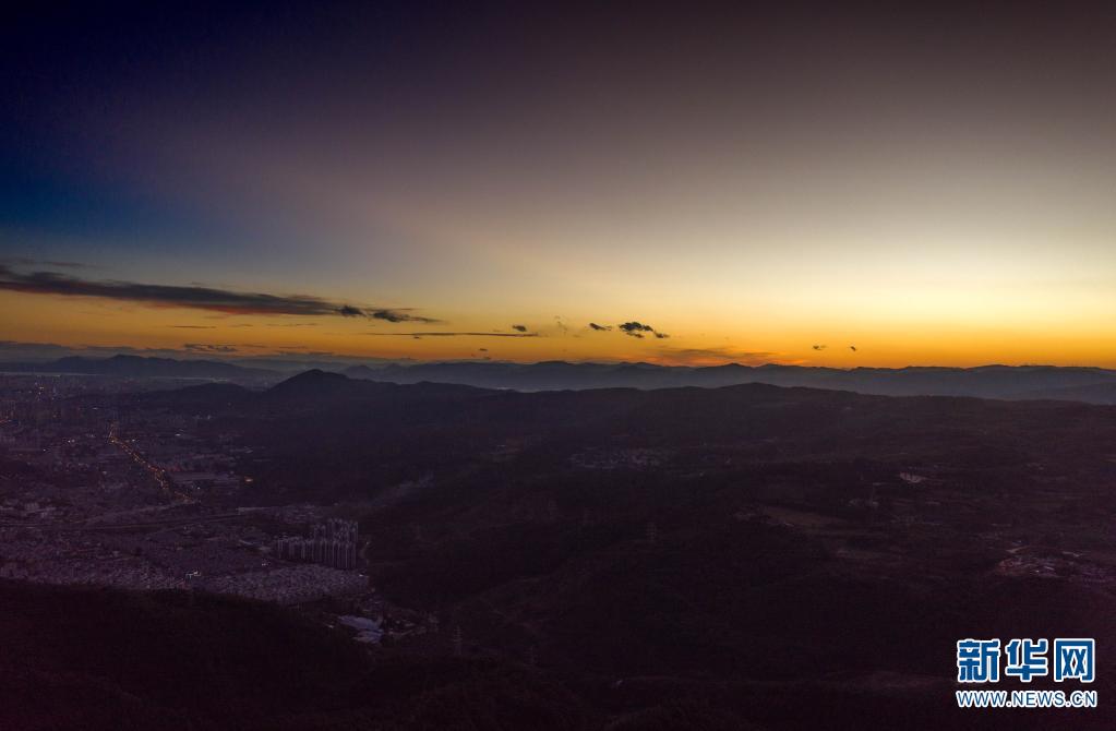 位于昆明北郊小哨方向的摩天岭,在其山顶便能眺望昆明城区。落日时分,余晖洒在城市的建筑群上,与远处的昆明西山睡美人交相辉映,美不胜收。(刘东10月31日摄影报道)