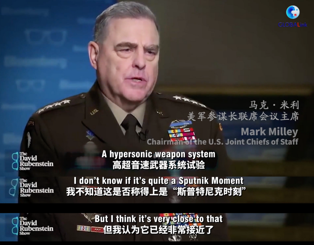 原来,英国《金融时报》不久前发布“独家报道”称,中国在今年夏天进行了“高超音速导弹试验”,令美国五角大楼和情报部门感到“震惊”。美国参谋长联席会议主席米利随后在受访时将中国的“高超音速导弹试验”与冷战时期的“斯普特尼克时刻”相提并论,声称对此感到非常担忧。