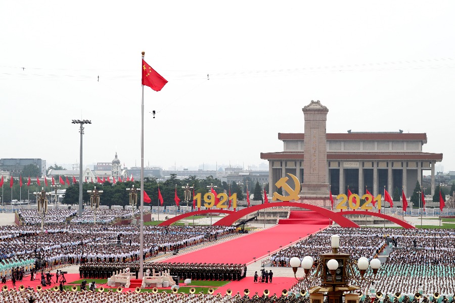 7月1日上午,庆祝中国共产党成立100周年大会在北京天安门广场隆重举行。(新华社记者兰红光摄)