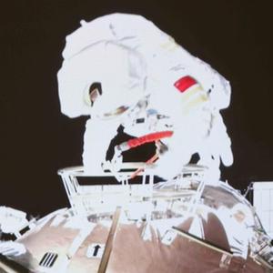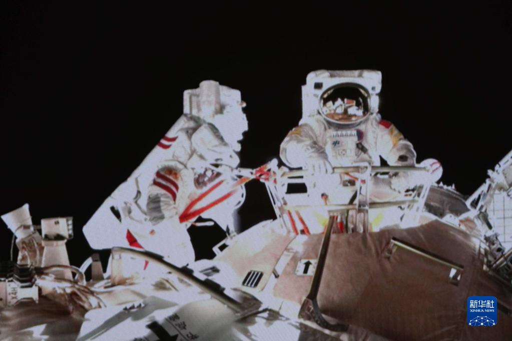 11月7日在北京航天飞行控制中心拍摄的神舟十三号航天员王亚平出舱画面。新华社发(郭中正 摄)